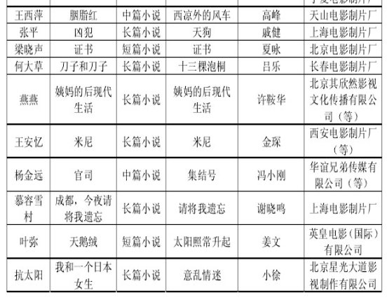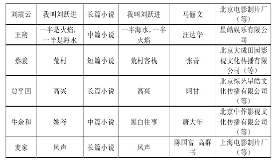 被影视制片人视为抢手货的还有凡一平的小说。他的《寻枪记》改编为电影《寻枪》,创造了2002年国产电影票房最高纪录,这使他名声大震,也成就了当下享誉全国的青年导演陆川。他的《理发师》被搬上银幕,还没有公映,便闻名全国,后来又被改编为同名电视剧。他的《投降》改编为电视剧《最后的子弹》,没有拍完就成为人们的话题。《撒谎的村庄》被改编为电影《宝贵的秘密》后,也引起了人们的好奇。凡一平被称为“备受中国当代出品人、制片人、导演青睐的小说家”。龚桂华的小说也是多次转变为电视剧。新世纪以来,根据他的《寒秋》拍摄的同名电视剧成为了北京电视台2008年开年大戏,今年由他的《红船》改编的同名电视剧准备开拍。